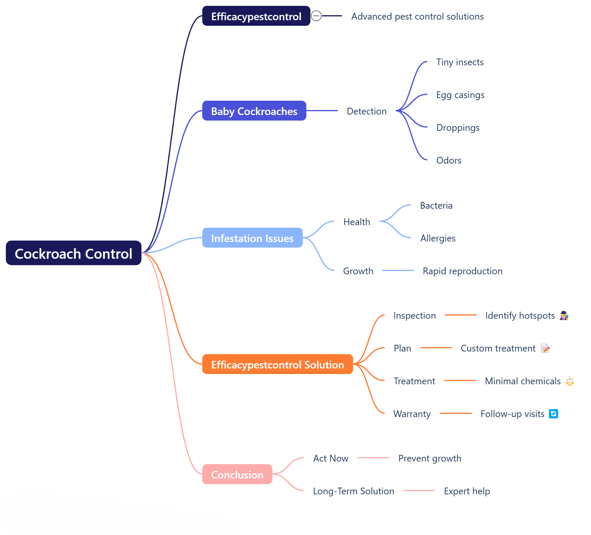 Baby cockroaches signal an infestation needing urgent action. They hide in dark, damp places and pose health risks by spreading germs. Efficacypestcontrol's 4D treatment targets
